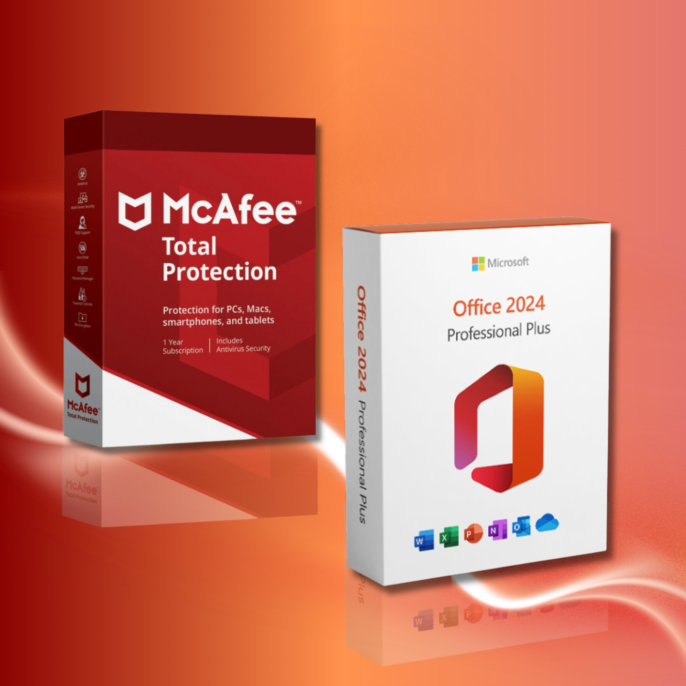Office 2024 Professional Plus + McAfee Total Protection, due vantaggi in un’unica soluzione. Office per tutti gli strumenti di produttività, mentre McAfee protegge da subito il tuo PC da virus, malware, ransomware e minacce web.