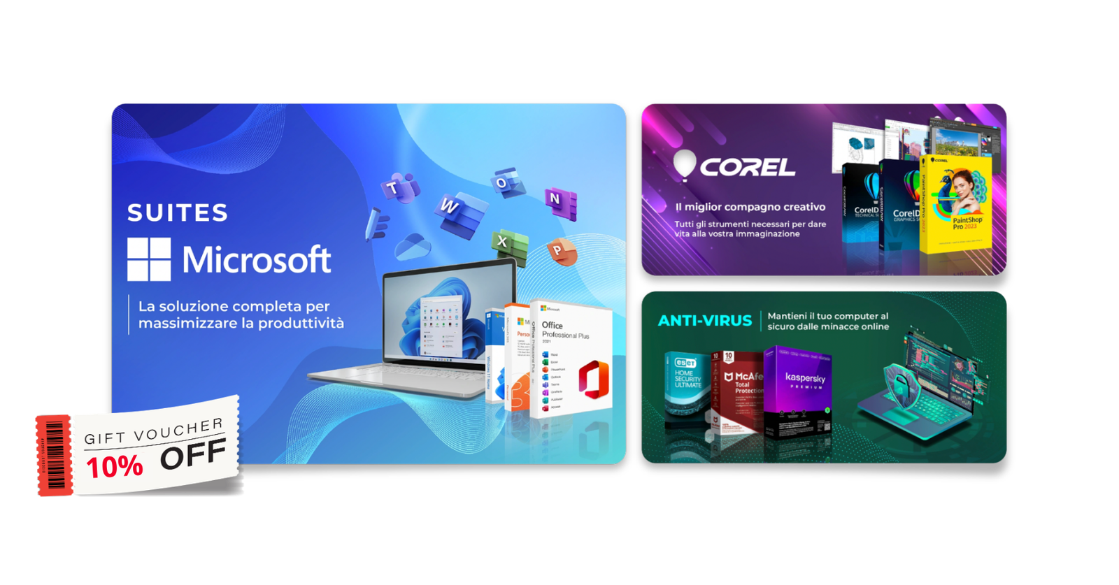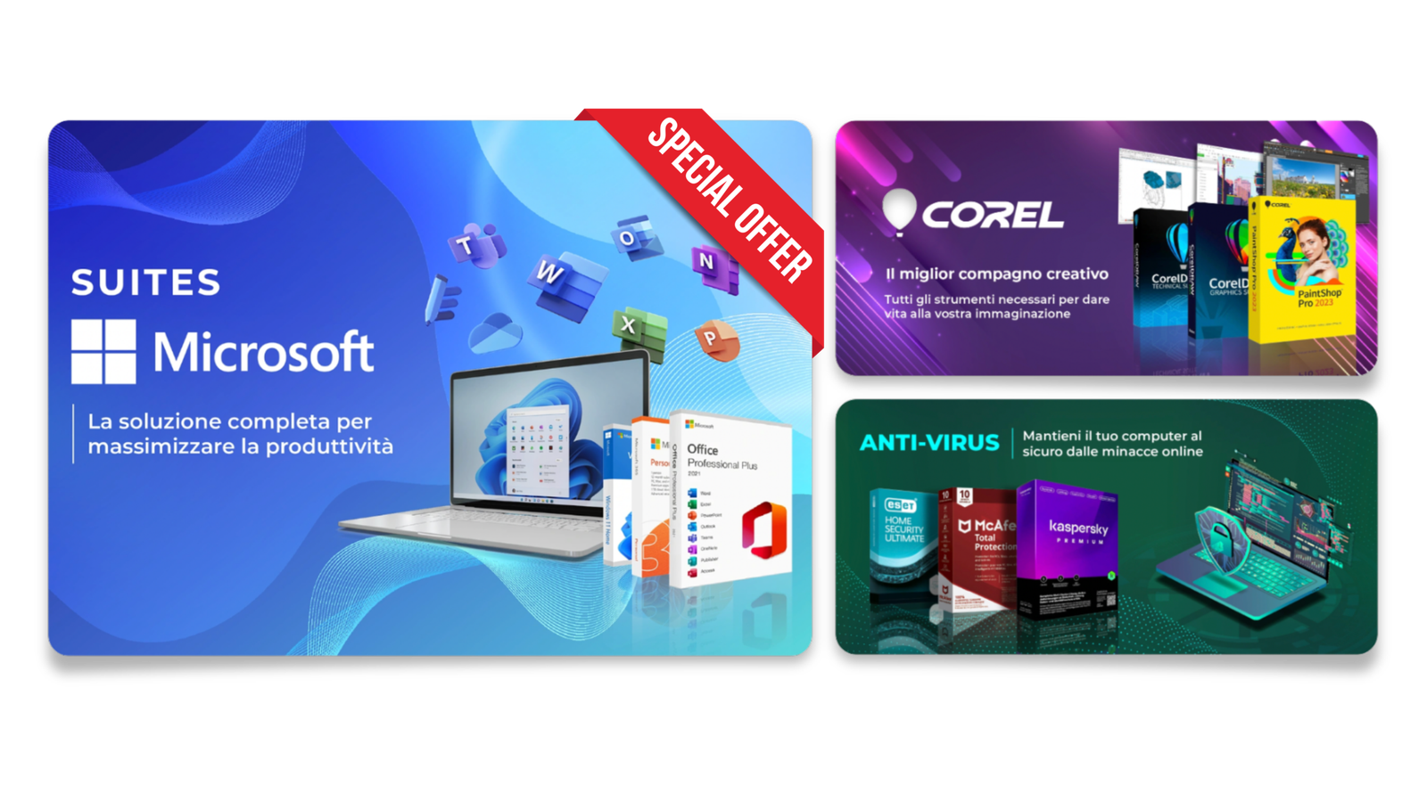 Un pacchetto completo di produttività e sicurezza, aggiornamenti regolari e supporto integrato, senza dover cercare singolarmente prodotti e soluzioni compatibili. È particolarmente utile per chi desidera un PC pronto all’utilizzo, efficiente e protetto