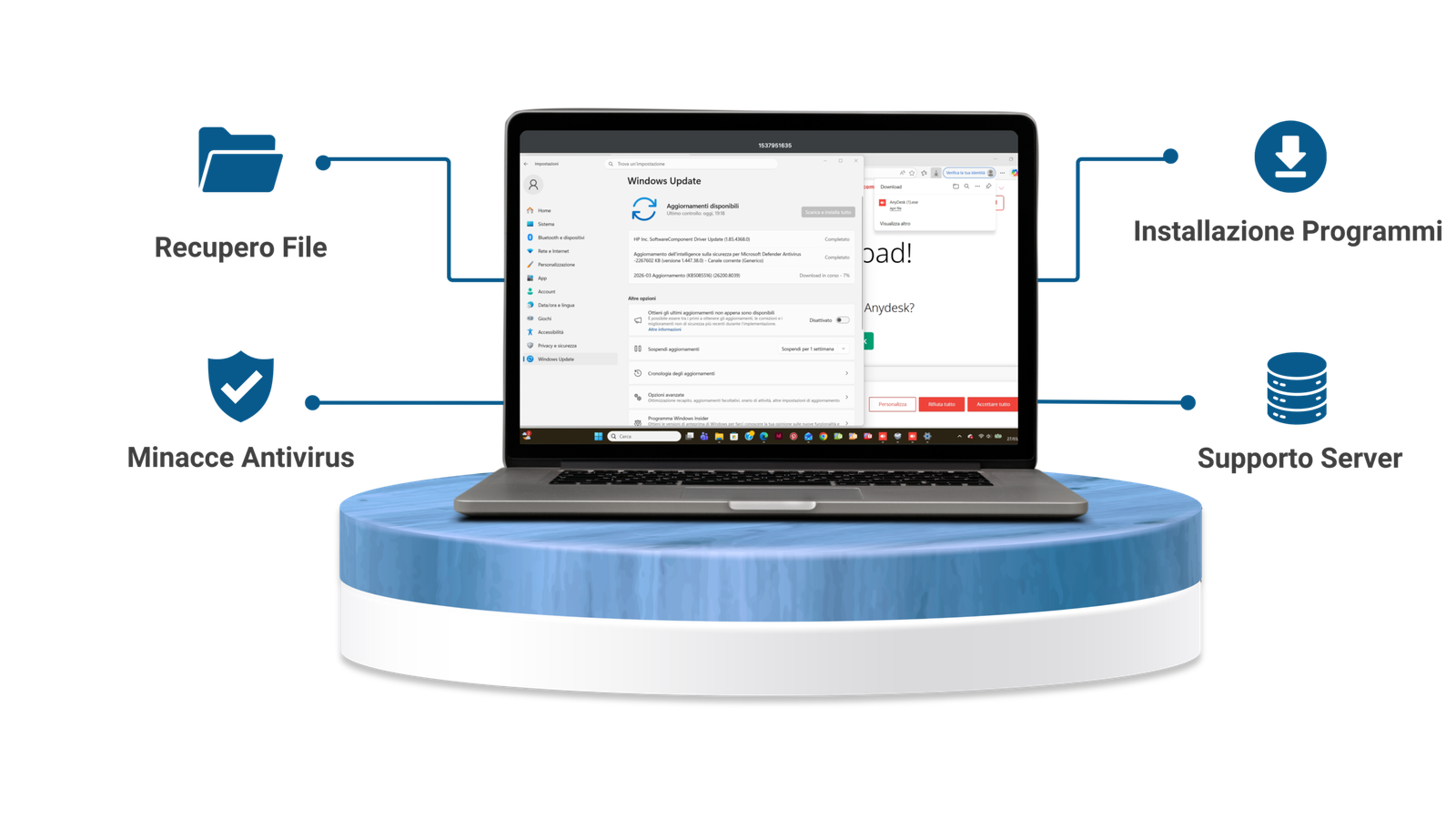 Posso intervenire da remoto con AnyDesk in modo rapido e sicuro per installare, configurare o aggiornare il software di cui hai bisogno. Così puoi tornare subito a lavorare