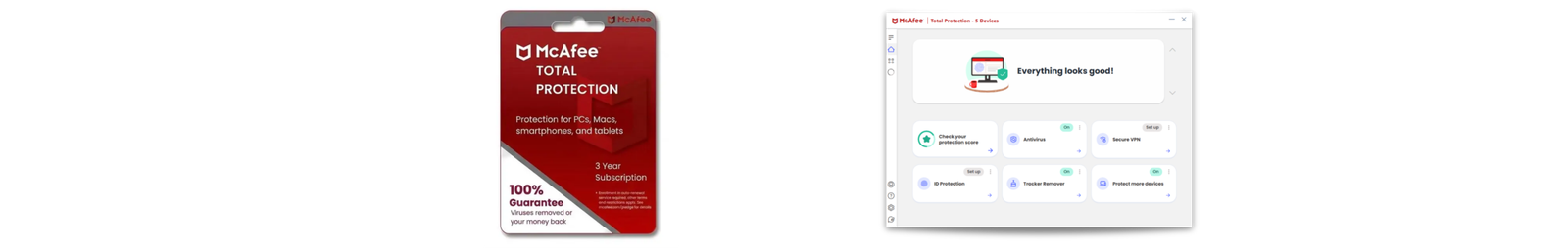 McAfee Total Protection è una soluzione di sicurezza completa pensata per proteggere il tuo computer da virus, malware, ransomware e minacce online. Navigare e scarica file in modo più sicuro, riducendo il rischio di virus e blocchi improvvisi del sistema. Include strumenti per aumentare la privacy e mantenere il PC più pulito e performante nel tempo. Ideale per chi vuole una protezione affidabile e semplice da gestire
